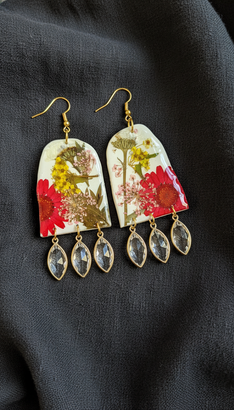Brighten your style with this fun floral arch dangle. Delicate flower fringe and shimmering gems create a playful accessory that brings joy to every moment.