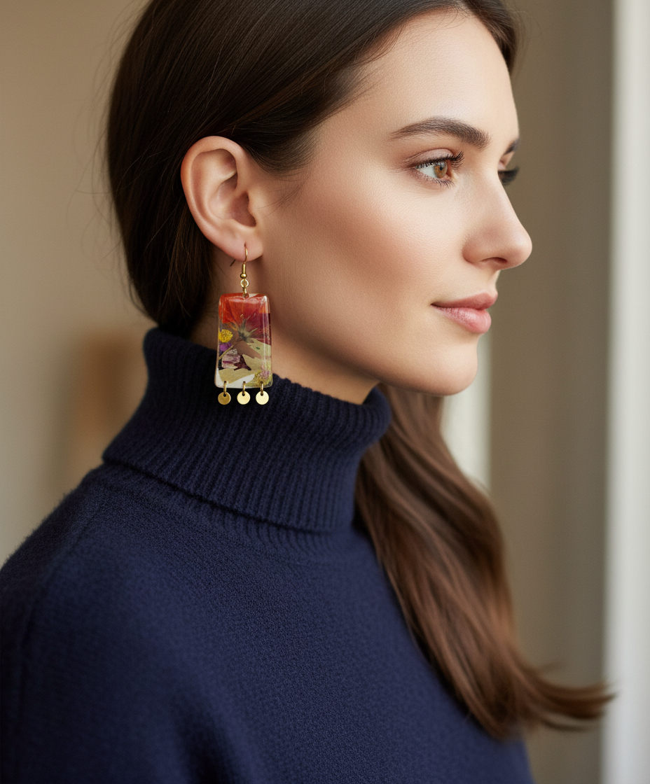 Elevate your jewelry collection with this striking trapezoid pendant, where organic floral forms meet contemporary design. Handcrafted from white polymer clay, each piece showcases delicate botanical detailing that captures nature's intricate beauty. Suspended brass disc fringe adds movement and a touch of vintage-inspired elegance, creating dynamic visual interest with every wear. Perfect for those who appreciate artisanal craftsmanship and distinctive statement pieces that blend artistic expression with refined style.